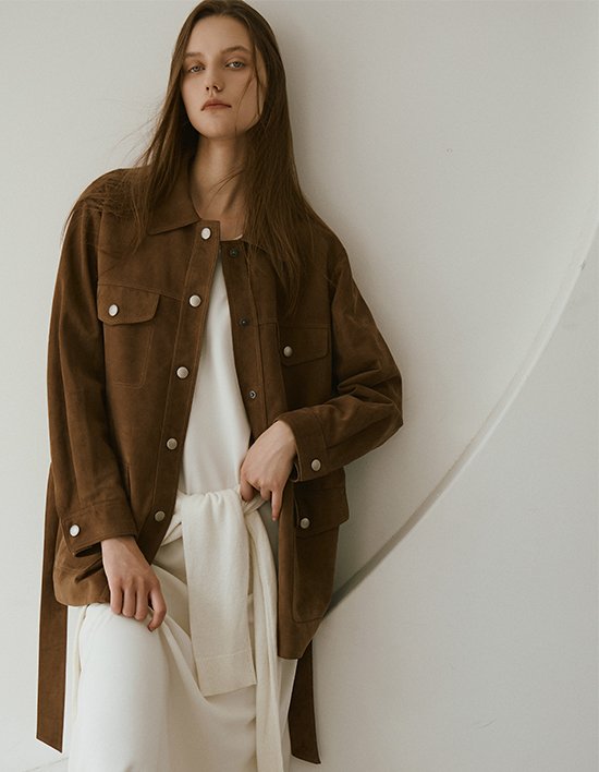 [로보] 이태리 스웨이드 벨티드 스냅 하프 코트