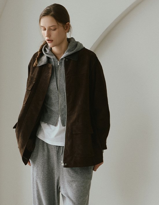 [로보] 이태리 스웨이드 배색카라 워크 재킷