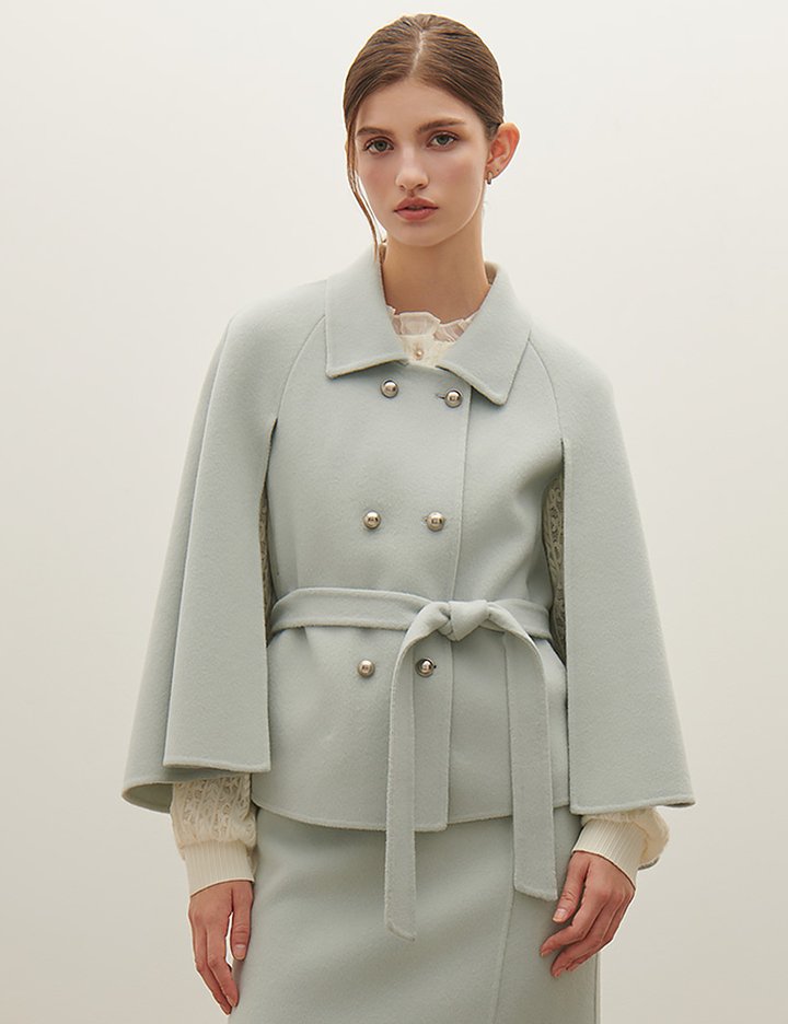 [샤틴] 핸드메이드 벨티드 더블 울 케이프 코트 S254B733