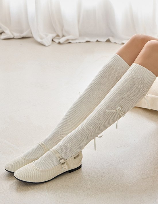 [비아리츠] 헬렌 리본 포인트 골지 니삭스 2color