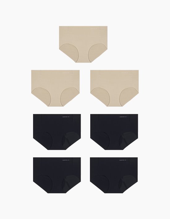 [포에버21] 여성 베이직 프리컷 퓨징 팬티 블랙+베이지 7PACK