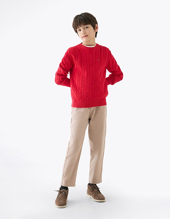 케이블 짜임으로 클래식한 무드와 고급스러운 텍스처를 느낄 수 있는 스웨터입니다.<br>크루넥 디자인은 깔끔하고 단정한 실루엣을 제공하며, 톤