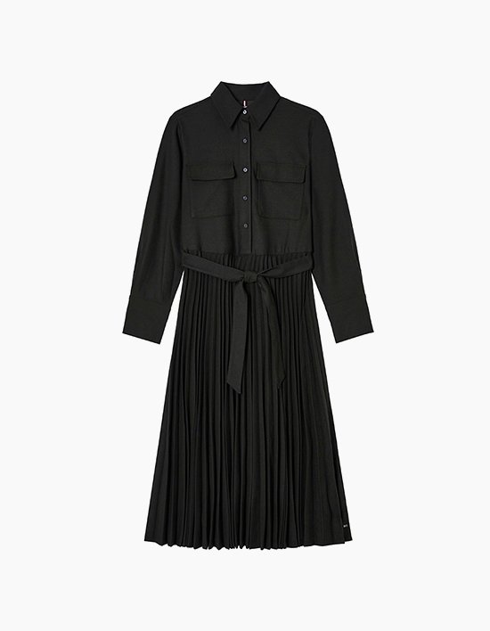 Fit 릴랙스 핏 플란넬 긴팔 셔츠형 플리츠 원피스입니다. 따뜻한 트윌 소재와 A라인 실루엣으로 편안하면서 여성스러운 핏을