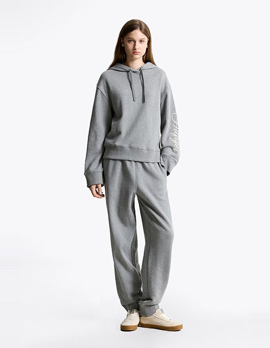 Fit 레귤러 핏 부드러운 면 100% 소재로 편안한 착용감을 자랑하는 테리 스웨트 팬츠입니다. 허리 밴딩과 내부 드로스트링