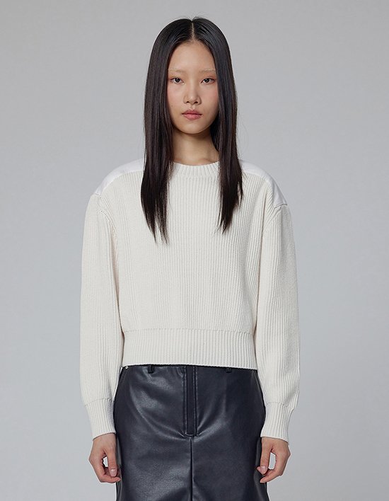 [헌터] 여성 크루넥 우븐 어깨 패치 스웨터 2종 (택1)