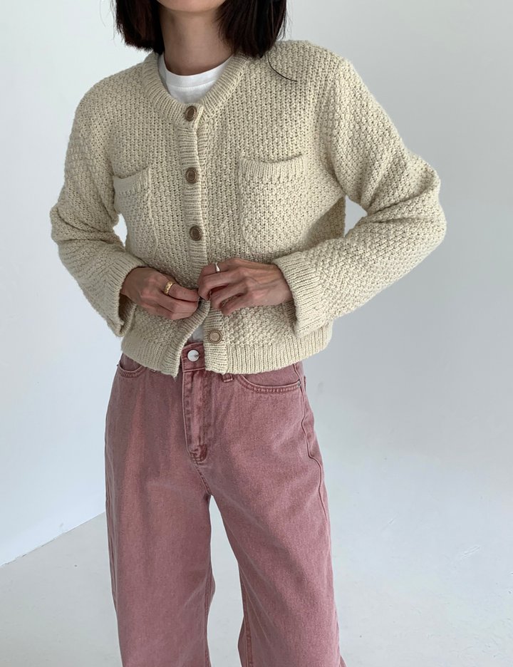 [바이듀] 골드 버튼 가디건 (아이보리)