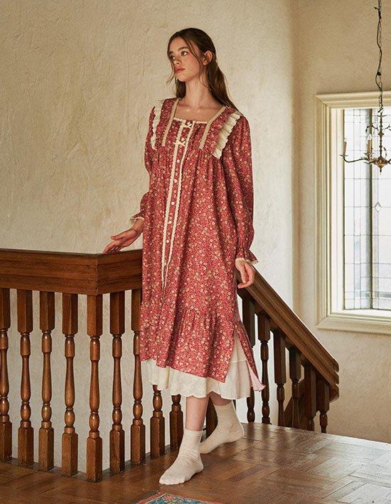[울랄라 파자마] 텔링 긴팔 원피스 딥레드 (21수) FREE