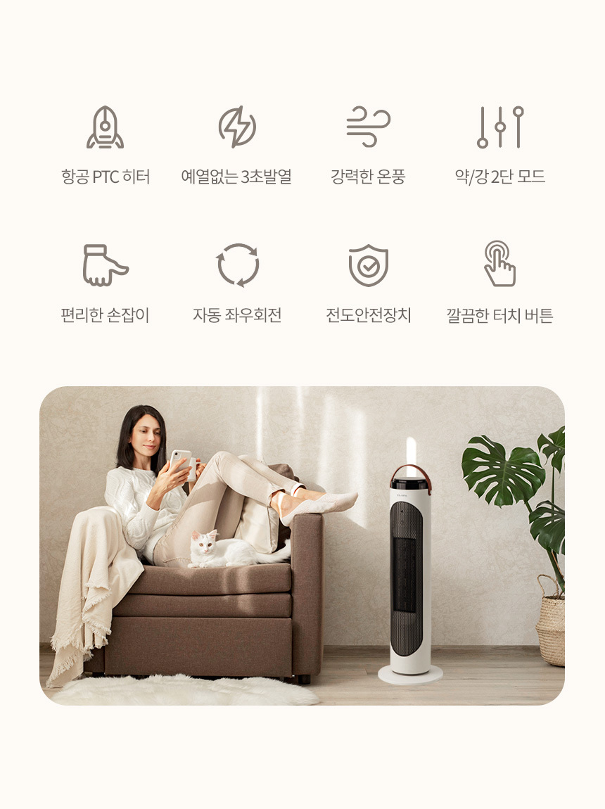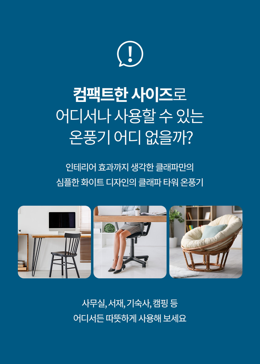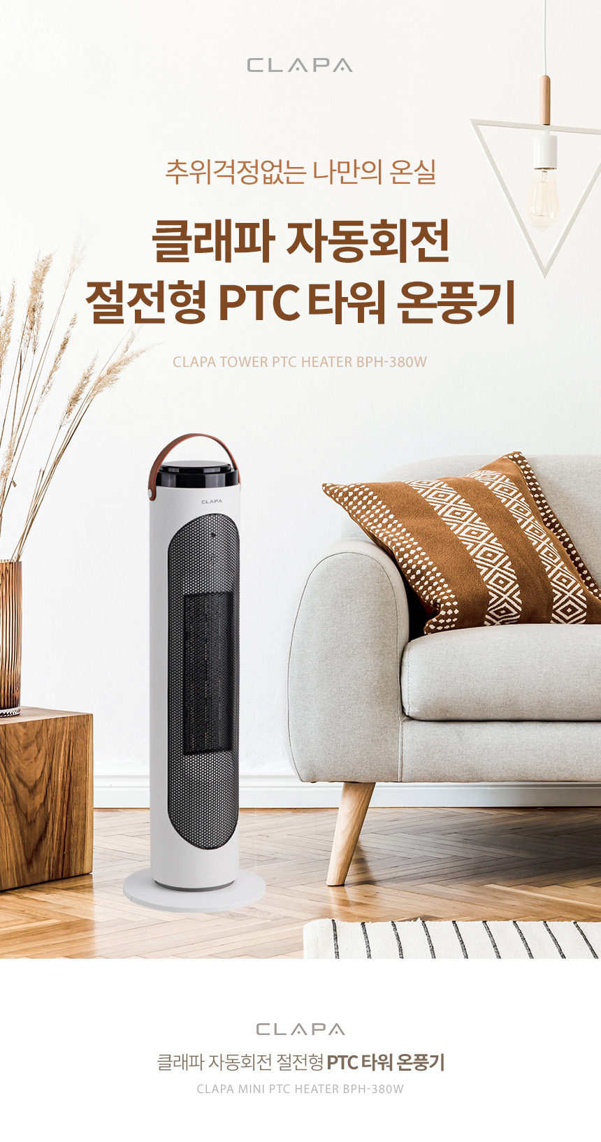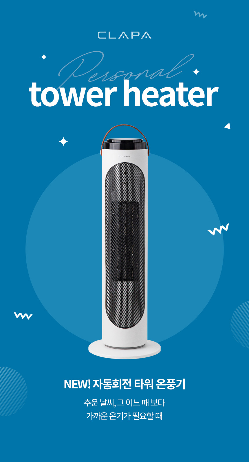 [클래파] PTC 타워 미니 온풍기 자동회전 절전형