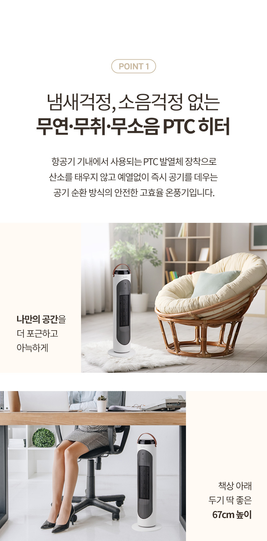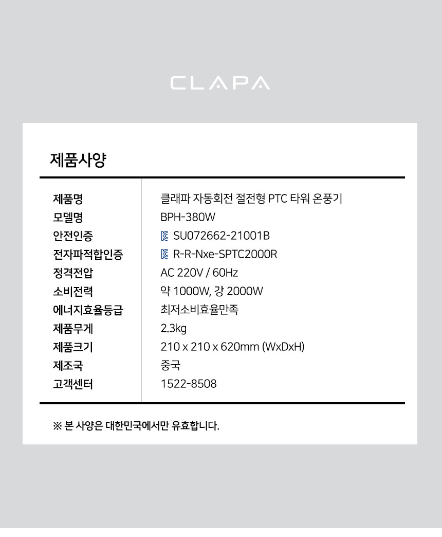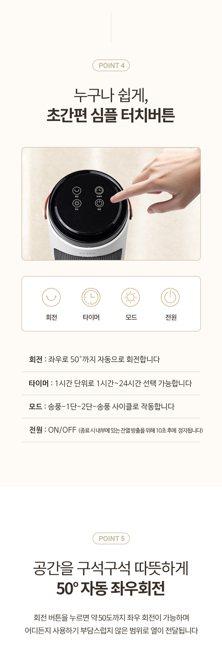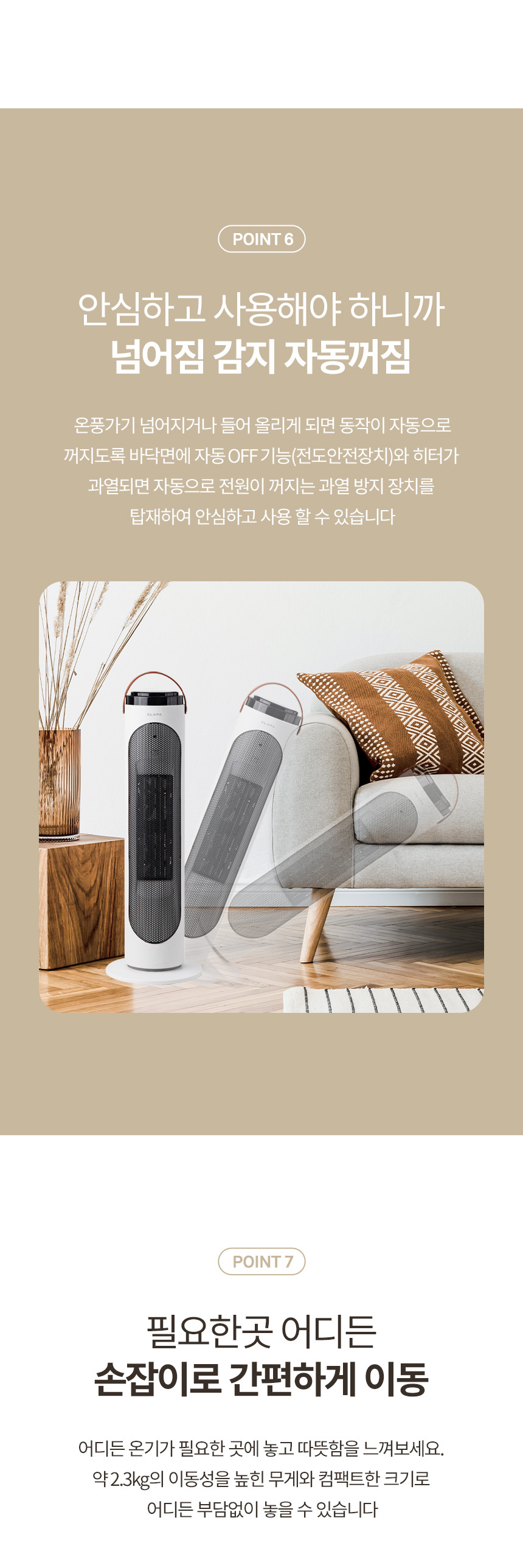 [클래파] PTC 타워 미니 온풍기 자동회전 절전형