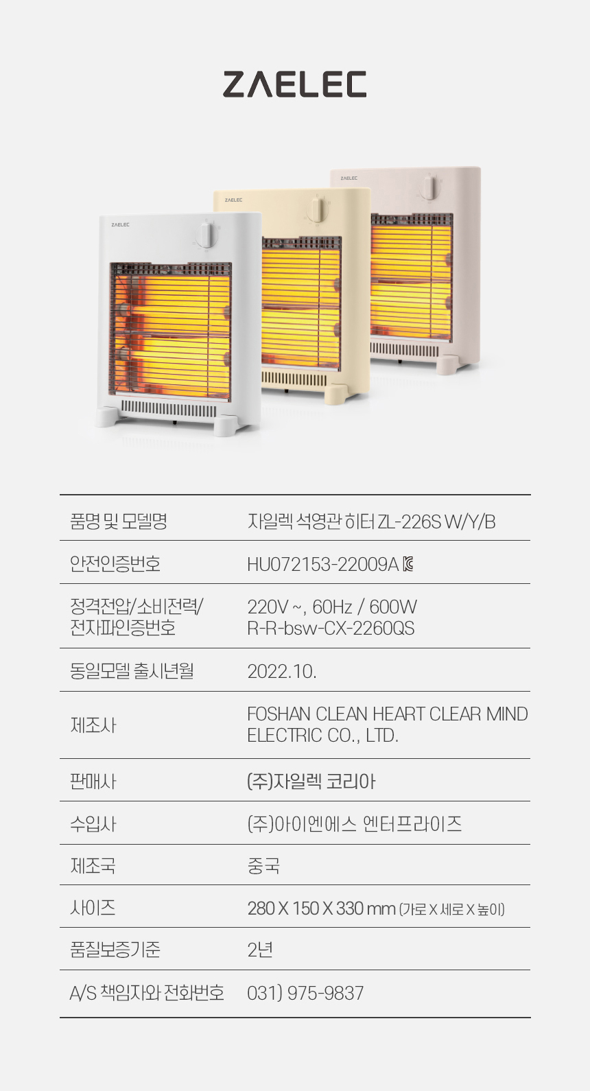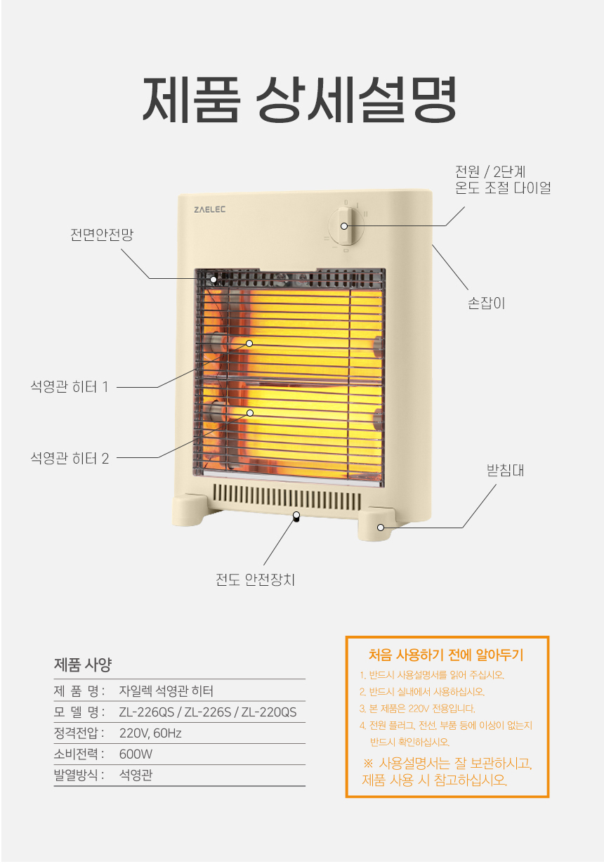[자일렉] 석영관 전기히터 사무실 발난로 전기난로