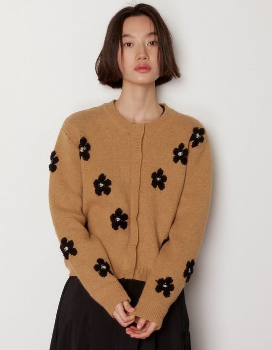 [오쿠카] 플라워자수 니트 가디건 - 블랙플라워