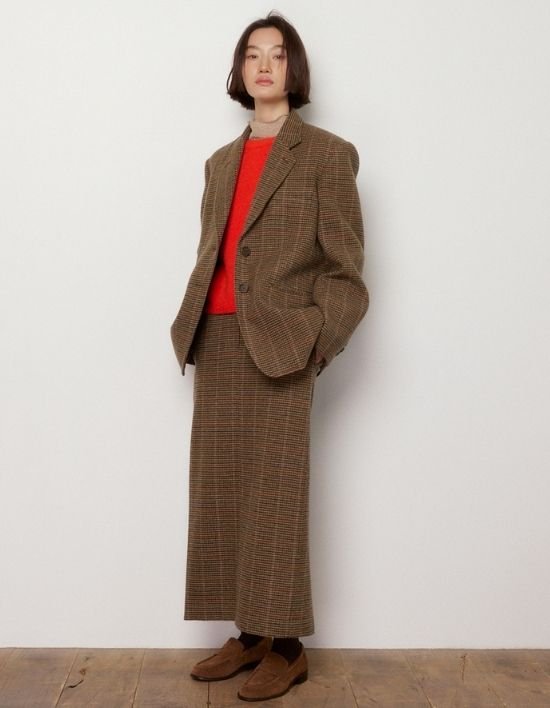 [오쿠카] 클래식 체크 롱 스커트