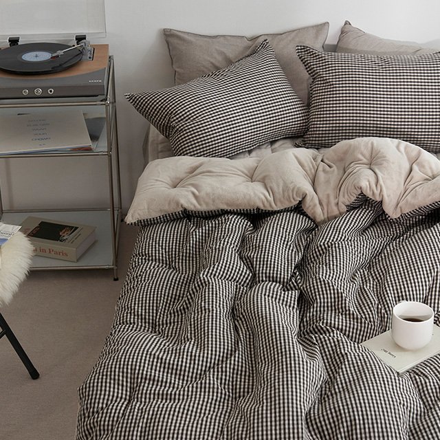 [데코뷰] 따뜻한 카푸치노 브라운체크 극세사 차렵이불 2종 (택1)