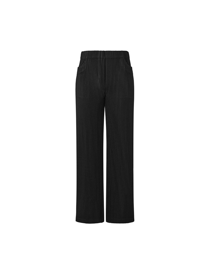 [몽플리쎄] 여성 밑단 스냅 투웨이 플리츠 스트레이트 팬츠 (블랙)