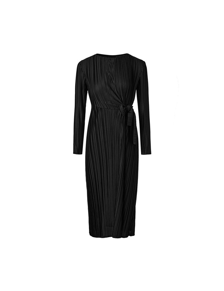 [몽플리쎄] 여성 타이 포인트 플리츠 롱 드레스 (블랙)