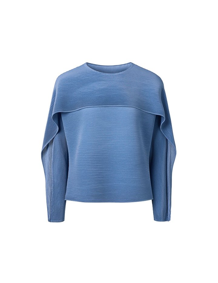 [몽플리쎄] 여성 플랩 소매 호리즌 플리츠 티셔츠 (블루)