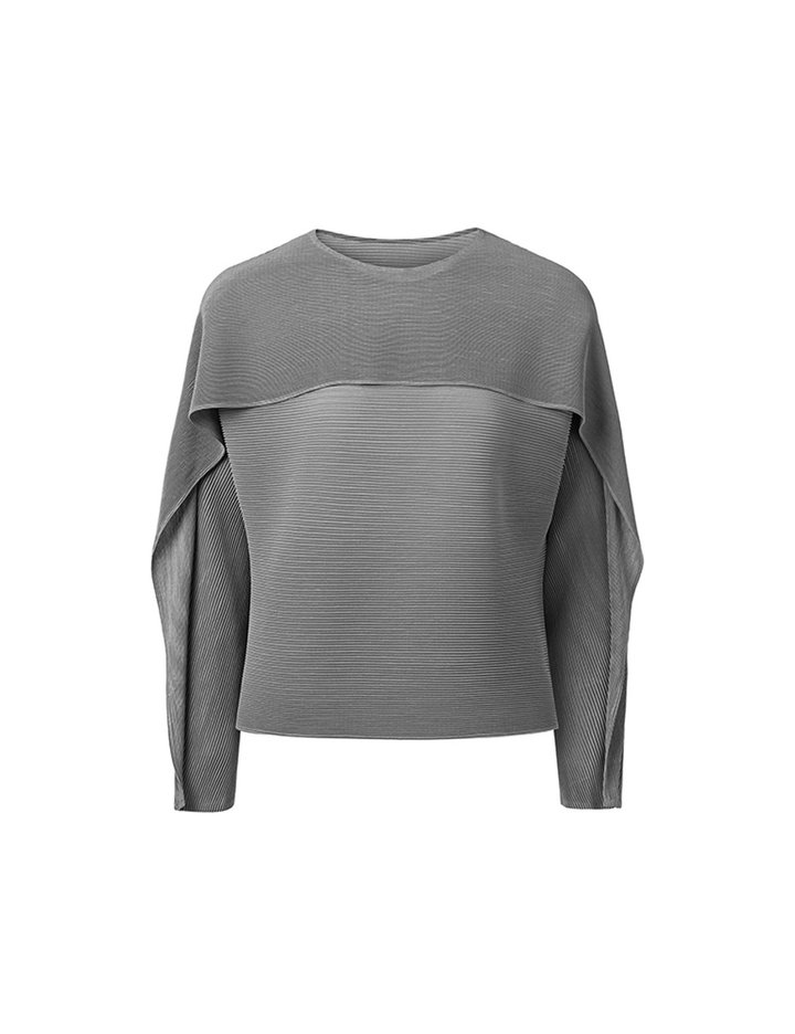 [몽플리쎄] 여성 플랩 소매 호리즌 플리츠 티셔츠 (그레이)
