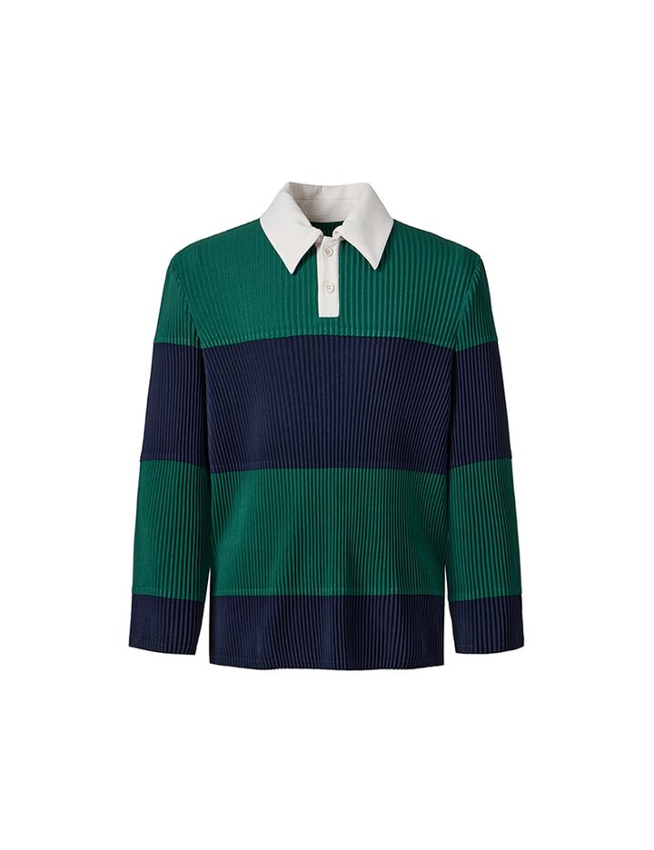 [몽플리쎄] 공용 플리츠 스트라이프 럭비 셔츠 (그린)