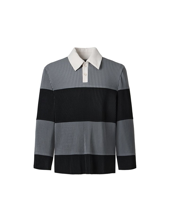 [몽플리쎄] 공용 플리츠 스트라이프 럭비 셔츠 (블랙)