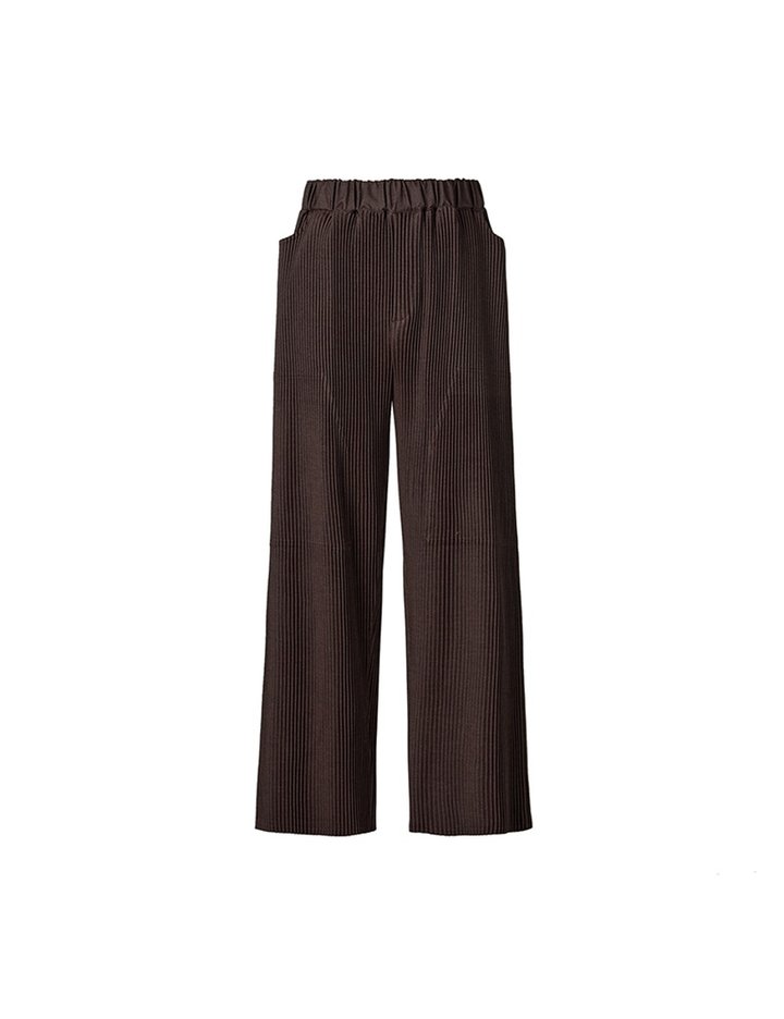 [몽플리쎄] 공용 아웃포켓 데님 플리츠 스트레이트 팬츠 (브라운)