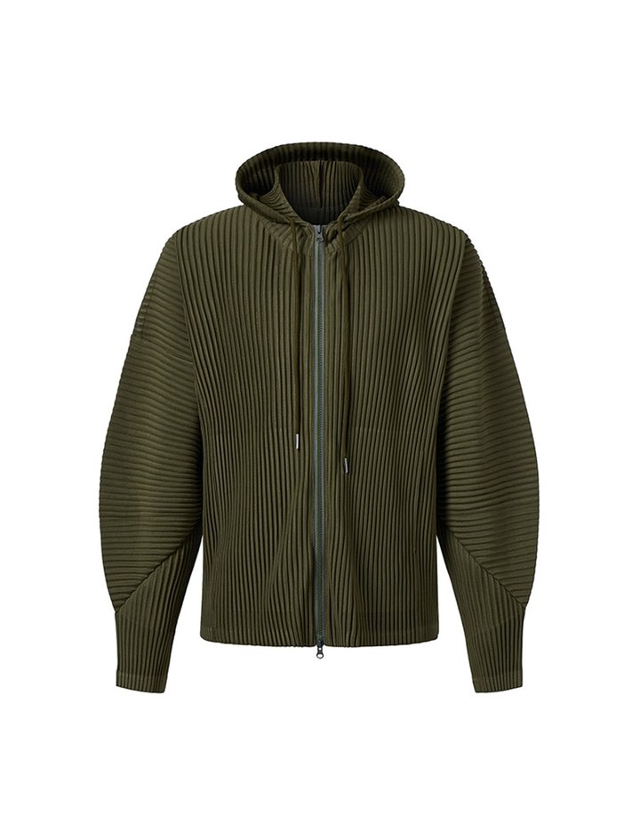[몽플리쎄] 공용 투웨이 플리츠 후드집업 아우터 카키
