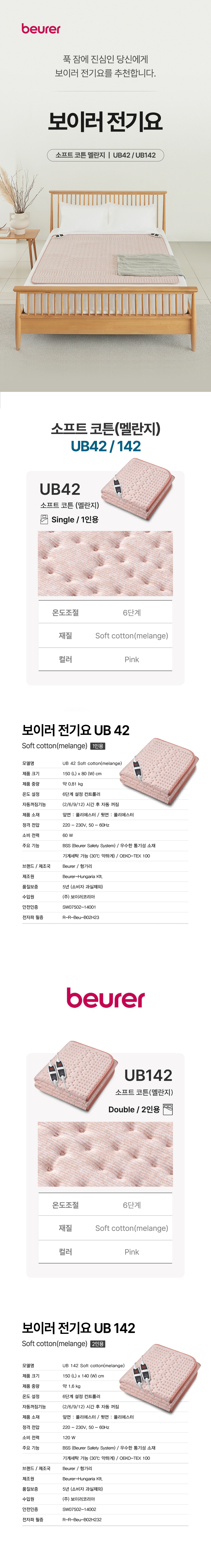 [보이러] 전기요 6단 핑크 (1인용/2인용)