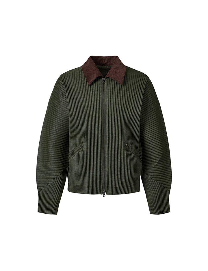 [몽플리쎄] 공용 코듀로이 카라배색 데님 보머 플리츠 자켓 (카키)