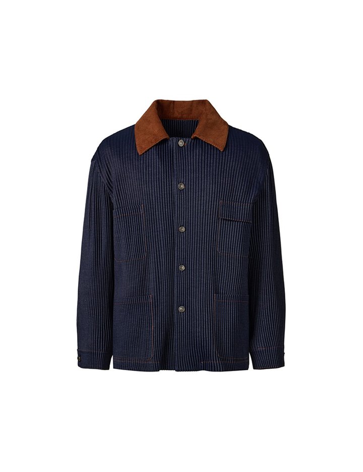 [몽플리쎄] 공용 코듀로이 카라배색 라이너 플리츠 워크 자켓 (네이비)