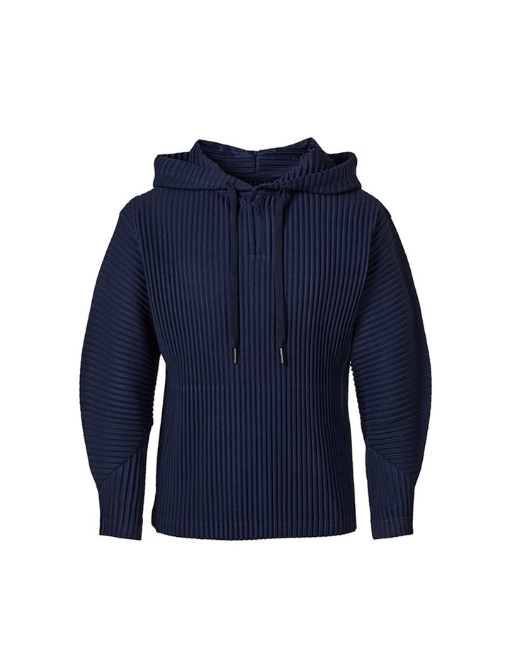 [몽플리쎄] 공용 컴포트 플리츠 후드 티셔츠 (네이비)