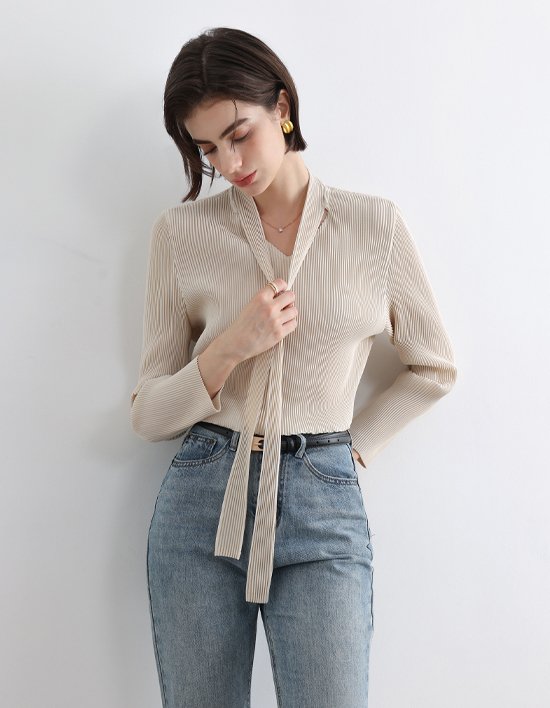 [플리츠무드] 리본타이 플리츠 탑_2colors (택1)