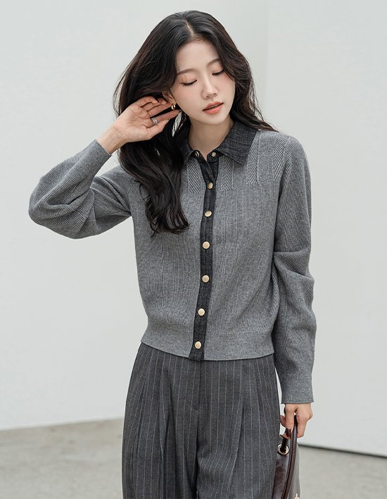 [모노앳디] 메이츠 데님 배색 니트 가디건