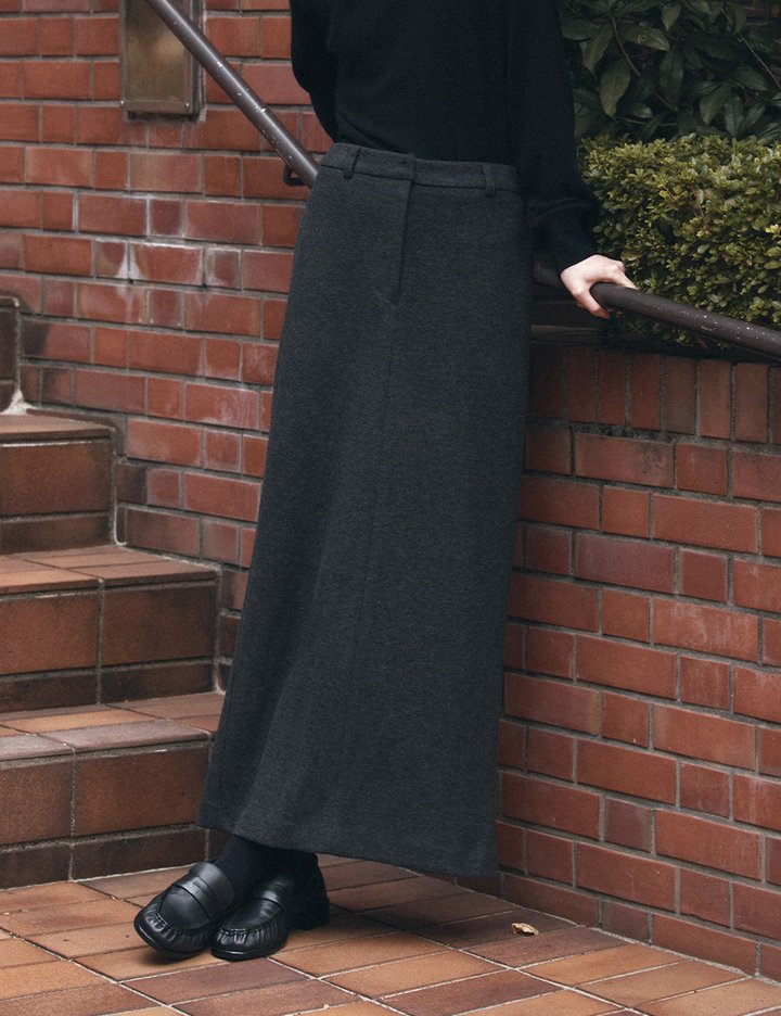 [시야쥬] 세미 플레어 칼럼 롱 스커트_차콜 (SIST9054)