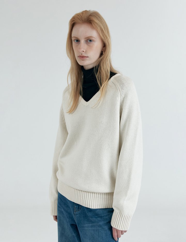 [시야쥬] 울 블렌드 루즈 브이넥 니트_크림 (SIKN2156)