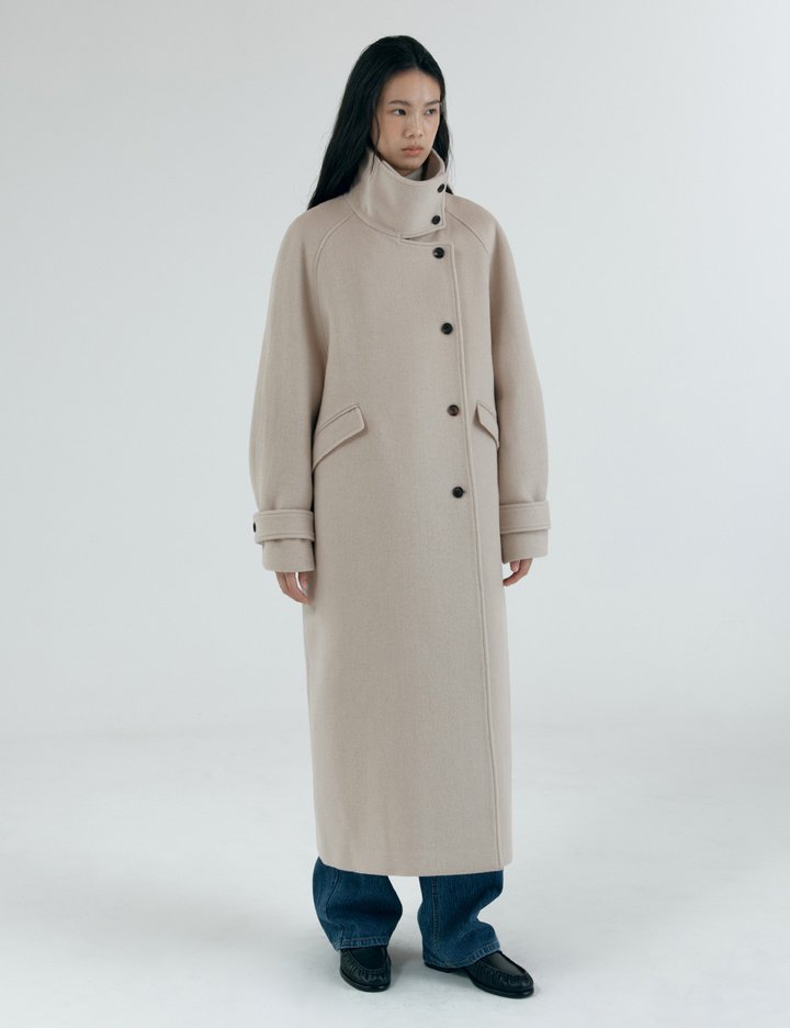 [시야쥬] 언밸런스 하이넥 롱 코트_애쉬 크림 (SIOT4166)