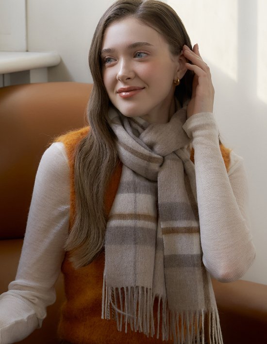 [엘르] 데니쉬 울 체크 롱 머플러 7컬러 (택1)