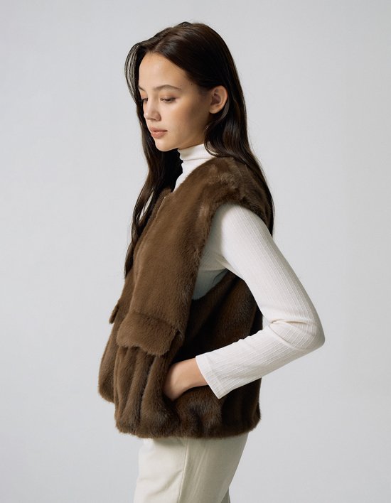 [앤클라인]페이크 퍼 포켓 베스트 S5HW051