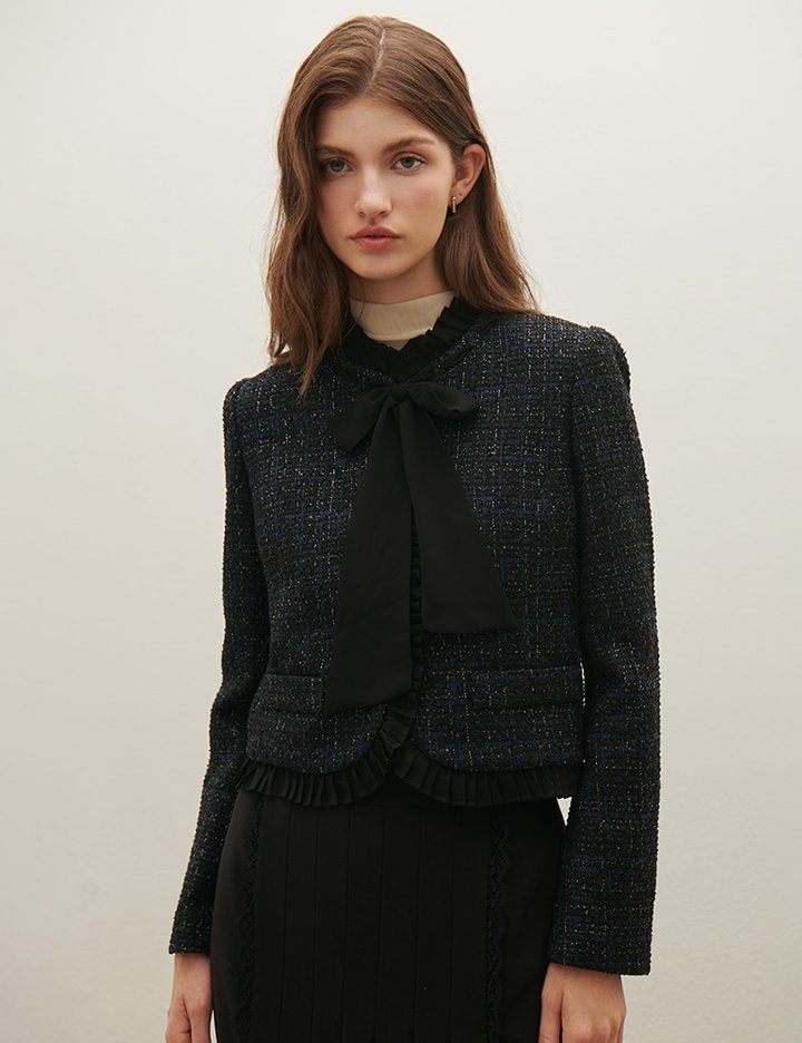 [샤틴] 리본 포인트 프릴 트위드 자켓 S254M154