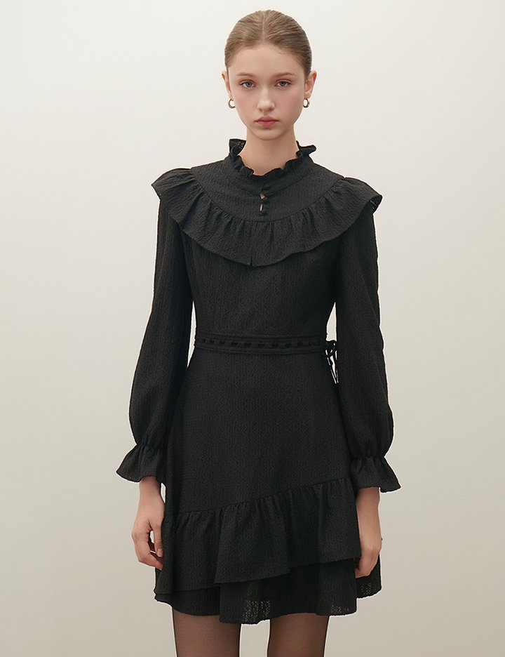 [샤틴] 프릴넥 허리스트링 원피스 S254B652