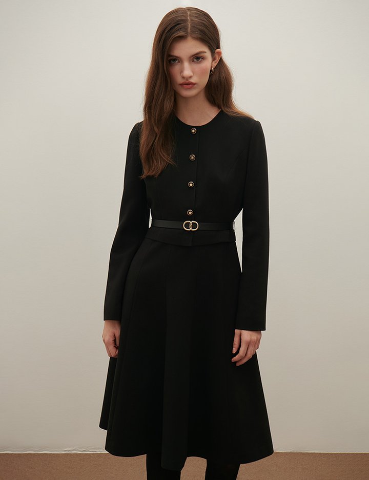 [샤틴] 라운드넥 플레어 원피스 S254M606