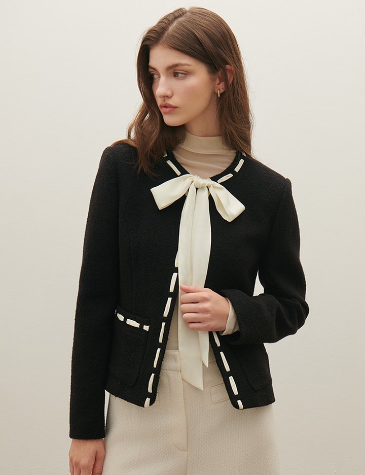 [샤틴] 배색 타이 자켓 S254T103