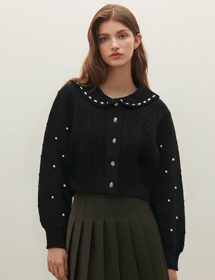 [샤틴] 진주장식 케이블 니트 가디건 O254T910