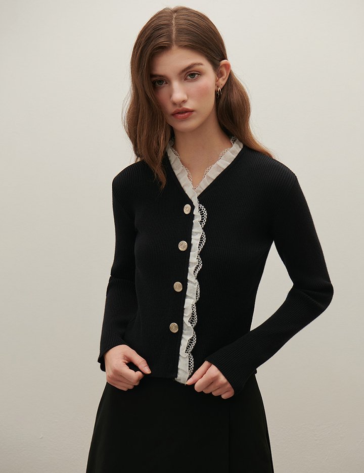 [샤틴] 레이스 프릴 골지 니트 O254T903