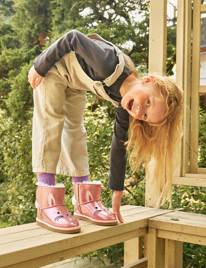 꼬리달린 토끼 일러스트가 돋보이는 귀여운 퍼부츠