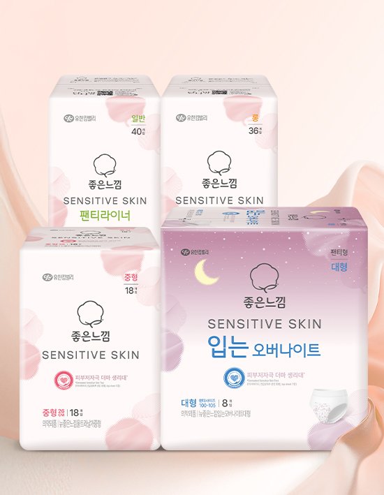 [좋은느낌] 센서티브 스킨 생리대 패드/라이너/입는오버나이트 9종 (택1)