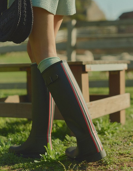 [헌터] 여성 리파인드 컬러 백프린트 톨 레인부츠 - 블랙 WFT2354RMABLK