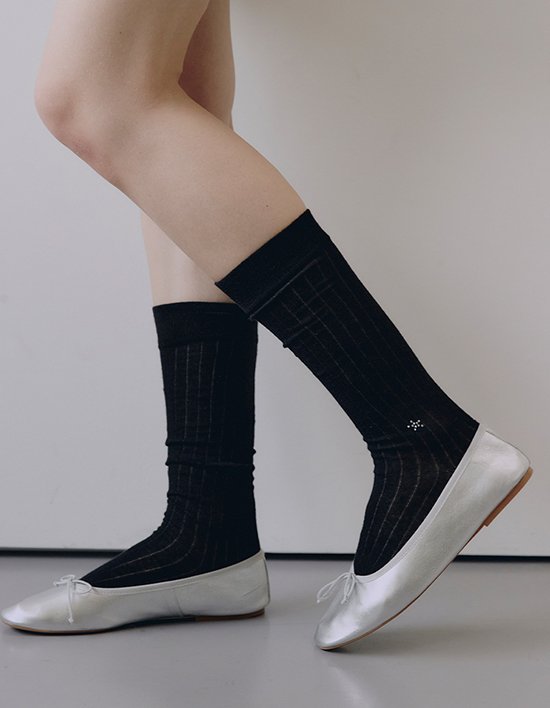 적당한 두께의 시스루 소재에 별빛 스톤 장식으로 은은한 포인트를 더했으며, 주름지게 혹은 니삭스로도 다양하게 연출할 수 있는 양말입니다.