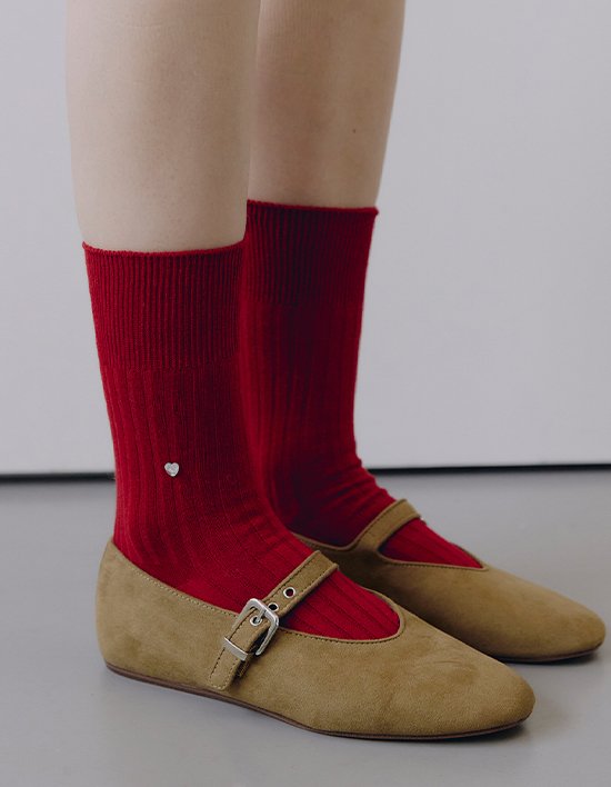 촘촘한 골지 짜임으로 슬림한 실루엣을 연출하고, 양쪽 발목의 하트 스톤 장식으로 은은한 포인트를 더한 양말입니다.