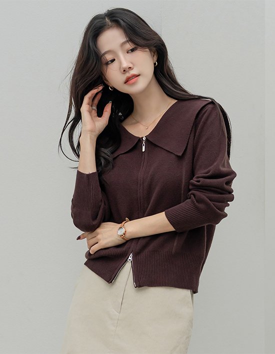 [모노앳디] 바브드 세일러 카라 투웨이 니트 집업