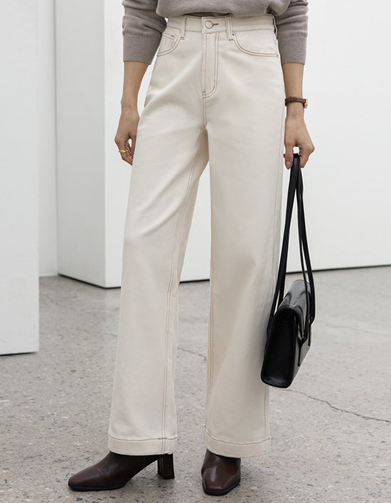[모노앳디] 민시 히든밴딩 기모 와이드 코튼 팬츠
