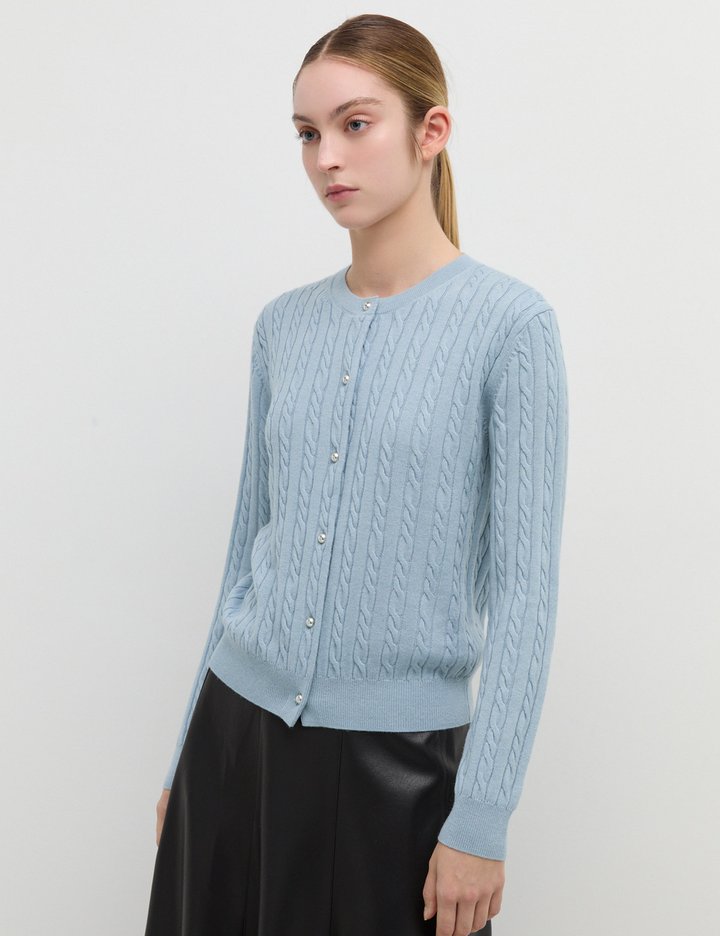 [쉬즈미스] 울 혼방 케이블 라운드넥 가디건_SSKCDP41100